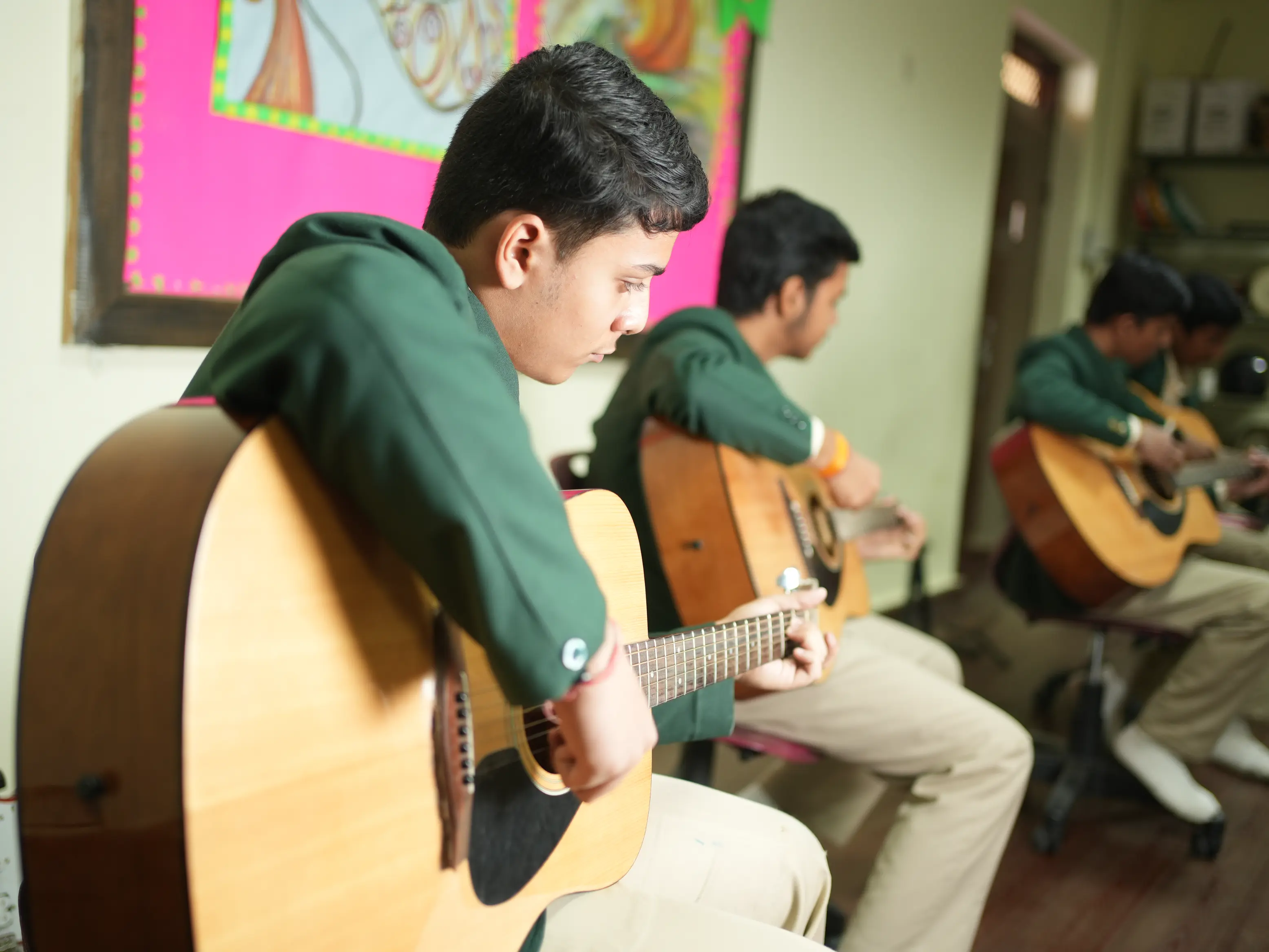 1730076‘Nothing activates as many areas of the brain as music and dance.’ Children in our school learn music and play various instruments like Guitar, Table, Drums, Casio, Harmonium etc. They are also trained to various dance forms. We believe in making wonderful musicians and dancers.